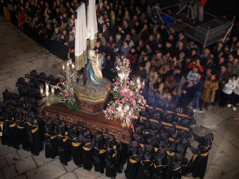 Imagen de las llevadores con María al Pie de La Cruz a hombros |